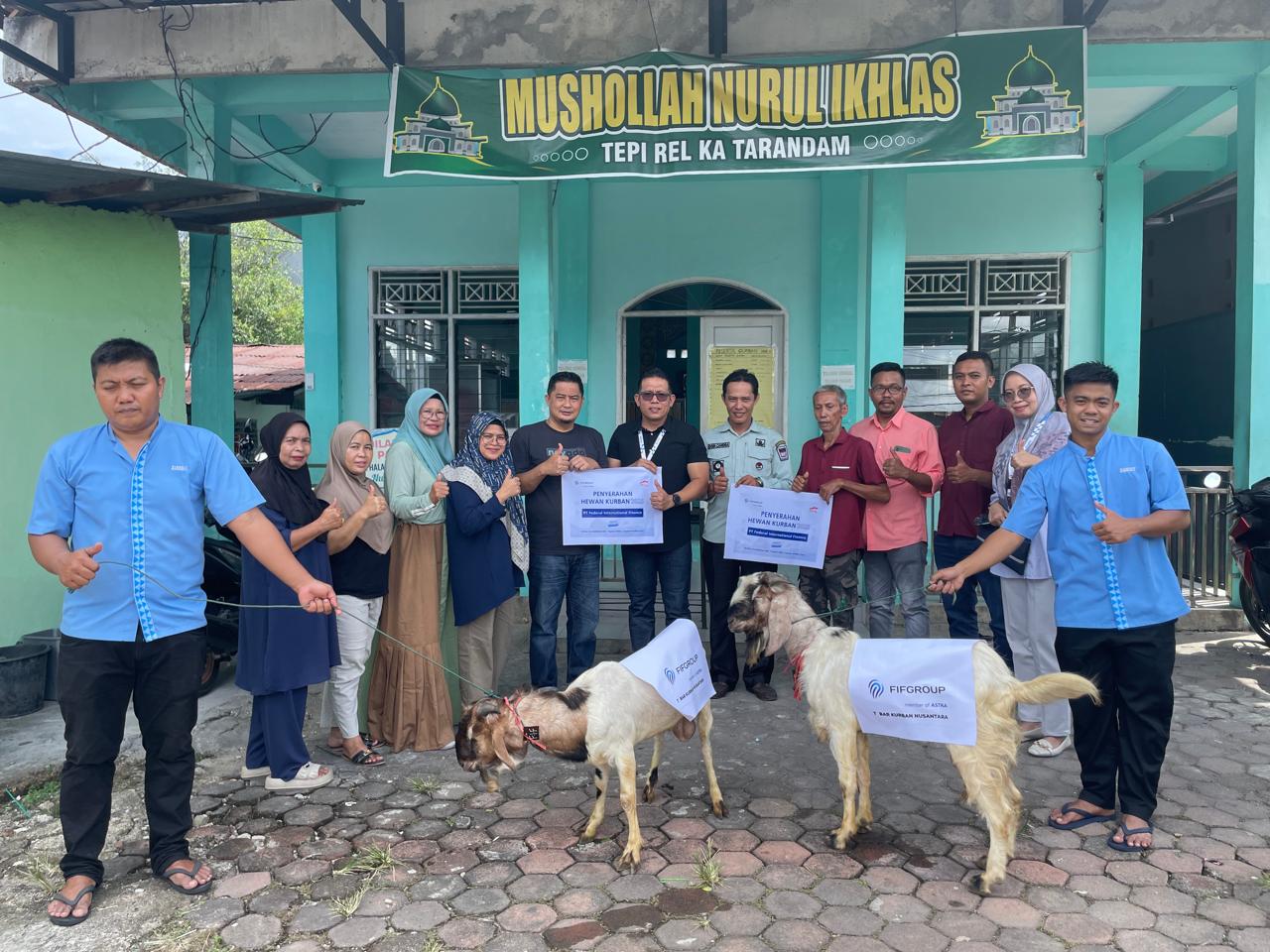 FIFGROUP Cabang Padang juga turut melakukan seremoni penyaluran dan penyembelihan hewan kurban yang dilaksanakan pada Kamis, 05 Juni 2025 yang berlokasi di Mushala Nurul Ikhlas Jl Tepi Rel Kereta Api Tarandam Sawahan Padang Timur Kota Padang Sumbar. Hewan kurban yang terdiri dari 2 ( Duan ) ekor kambing itu diserahkan langsung oleh Kepala Cabang FIFGROUP Padang , Rendi kepada Pengurus Mushala , Hendri. Ikut serta juga dalam penyerahan ini Hadir Pak Lurah Sawahan, Dodi Candra, Ketua Pelaksana Qurban Mushala Nurul Ihkas, desrial Usman, Ketua Pemuda Sawahan , Deko serta warga setempat.