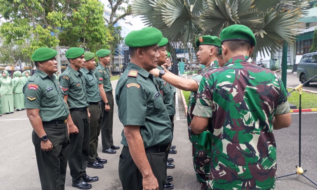 Acara Kenaikan pangkat anggota Kodim 0304/Agam yang dipasang tanda kenaikan pangkat, terdiri dari 2 orang Perwira, 27 orang Bintara dan 13 orang Tamtama, dengan total 42 orang anggota TNI Kodim 0304/Agam.