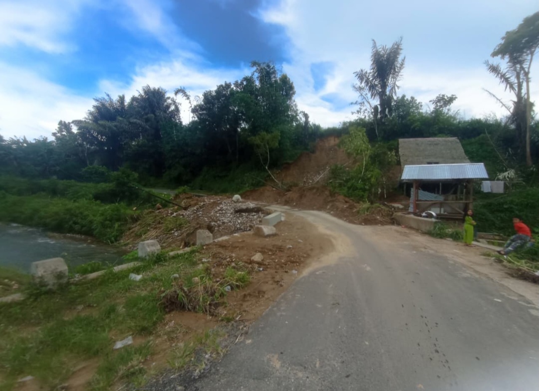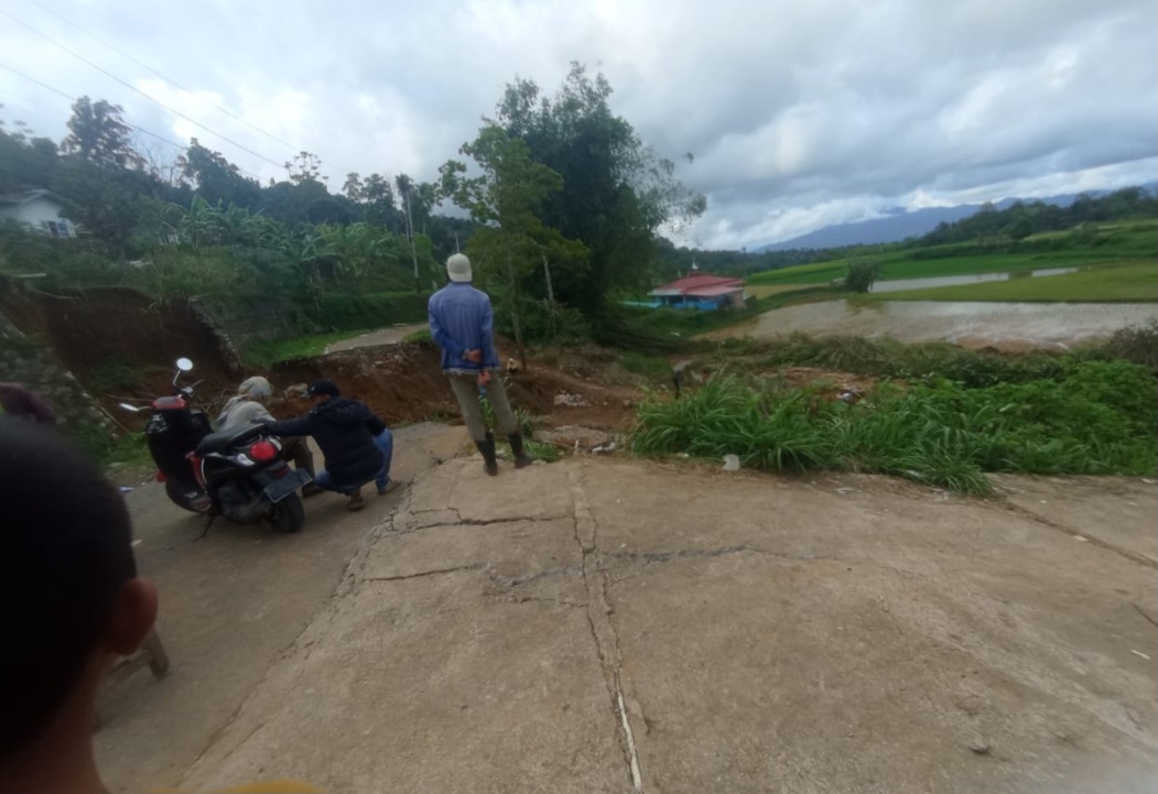 Jalan putus sepanjang ±5 meter dengan kedalaman sekitar 5 meter, menyebabkan akses kendaraan terhenti total dan menjadi titik paling kritis di jalur tersebut.