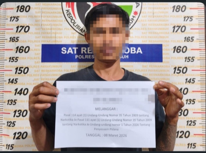 PAYAKUMBUH – TerasNagariNEWS.com. Polres Payakumbuh berhasil lakukan upaya paksa terhadap seorang laki-laki dewasa yang diduga terlibat tindak pidana penyalahgunaan narkotika jenis ganja pada hari Minggu (08/03/2026) sekitar pukul 23.00 WIB.