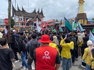 Bukittinggi –TerasNagari News.Com,-Palang Merah Indonesia (PMI) Kota Bukittinggi menurunkan 1 unit ambulans medis beserta 5 orang personel untuk siaga di tengah aksi solidaritas mahasiswa dan pengemudi ojek online (ojol) yang berlangsung di Kota Bukittinggi, Sabtu (30/8).