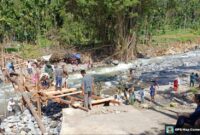 Malalak Selatan — Proses pembangunan jembatan darurat yang menghubungkan Jorong Siniair, Nagari Malalak Selatan menuju Jorong Jalan Banting Selatan, Nagari Malalak Barat, Kecamatan Malalak,…