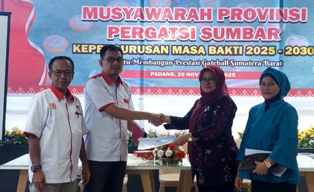 Padang – Rifda Suriani, ST.Sp, resmi terpilih sebagai Ketua Pengprov Persatuan Gateball Seluruh Indonesia (Pergatsi) Sumatera Barat periode 2025–2030 dalam Musyawarah Provinsi (Musprov) yang digelar di Padang, Kamis (20/11/2025). Rifda sebelumnya menjabat sebagai Wakil Ketua Umum I Pergatsi Sumbar.