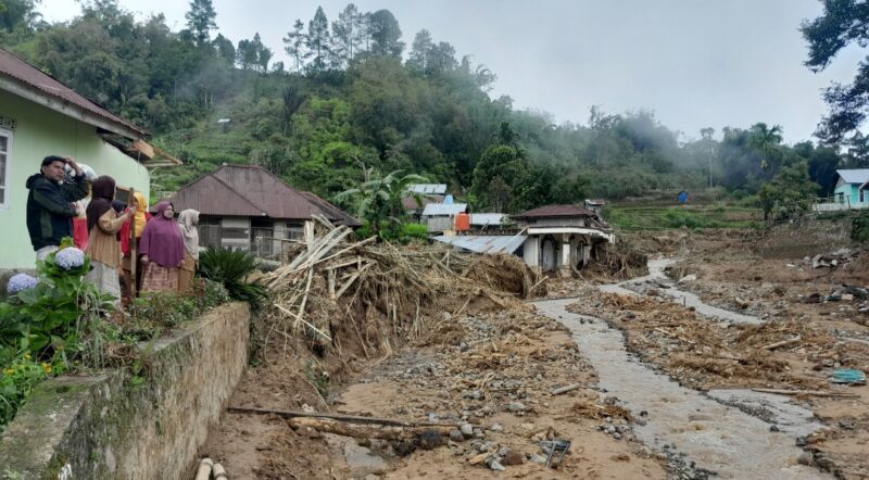 “Air tiba-tiba meluncur dengan cepat membawa batu-batu besar. Kami tidak sempat menyelamatkan apa pun,” kata salah seorang warga setempat yang rumahnya terdampak.