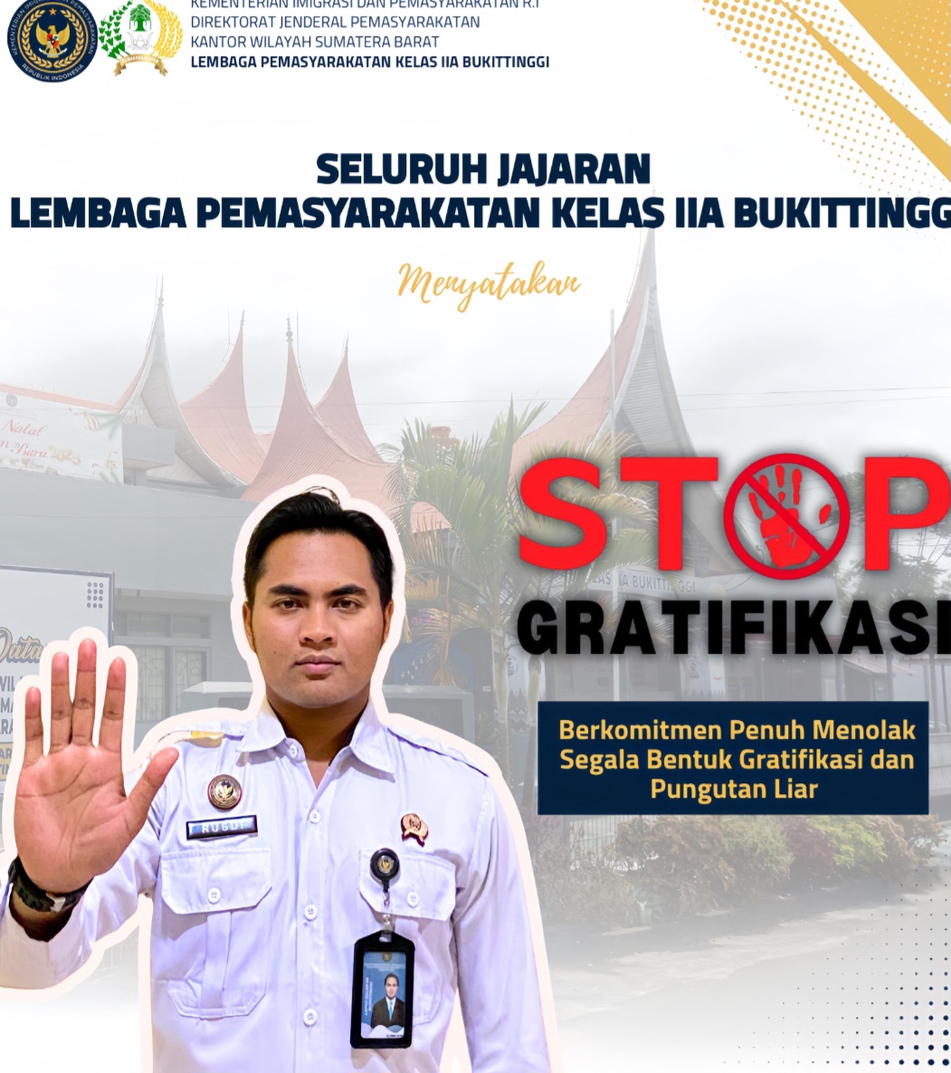 Bukittinggi –- Seluruh jajaran Lembaga Pemasyarakatan (Lapas) Kelas IIA Bukittinggi menyatakan komitmen tegas untuk menolak segala bentuk gratifikasi dan pungutan liar dalam pelaksanaan tugas dan pelayanan kepada masyarakat.
