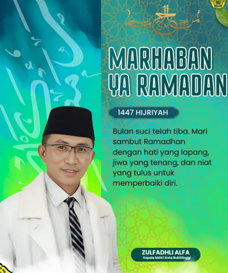 Bukittinggi — Keluarga Besar MAN 1 Kota Bukittinggi menyampaikan ucapan Selamat Menunaikan Ibadah Puasa Ramadhan kepada seluruh umat Muslim, khususnya kepada peserta didik, orang tua, alumni, serta masyarakat luas.