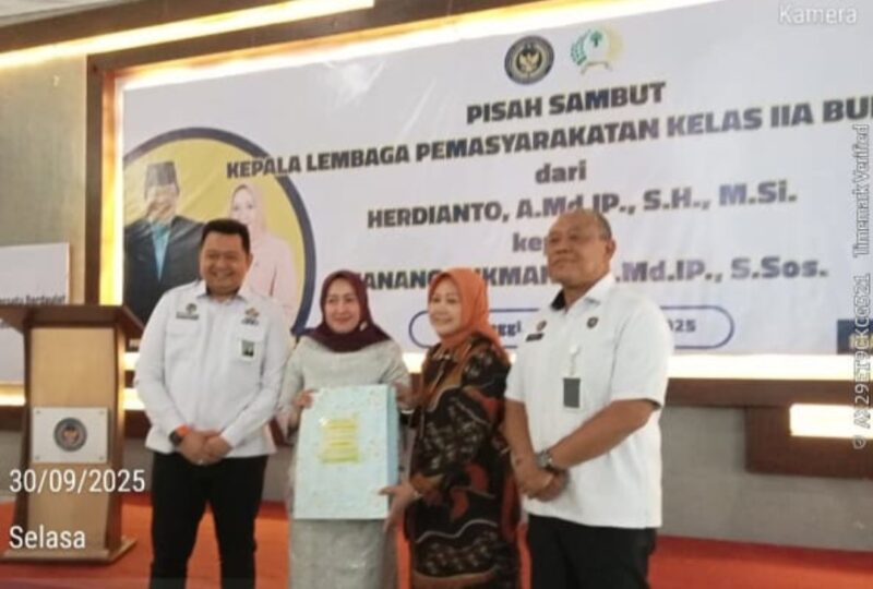 Bukittinggi –Lembaga Pemasyarakatan (Lapas) Kelas IIA Bukittinggi hari ini menggelar acara pisah sambut Kepala Lapas, dari Herdianto, A.Md.IP., S.H., M.Si. selaku kepala Lapas lama kepada Nanang Rukmana, A.Md.IP., S.Sos. selaku pejabat Kepala Lapas baru, pada Selasa, 30 September 2025.